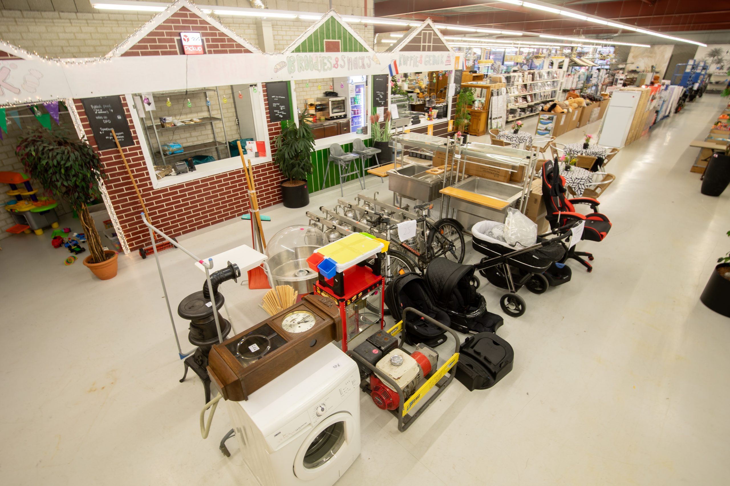 U vindt bij ons onder andere trays frisdrank, (merk)kleding, carnavalskleding en bijpassende accessoires. Daarnaast bieden wij een uitgebreid aanbod voor uw woning. Denk aan lampen, meubels, schilderijen, fotolijsten, servies en diverse woonartikelen, zowel nieuw als gebruikt.